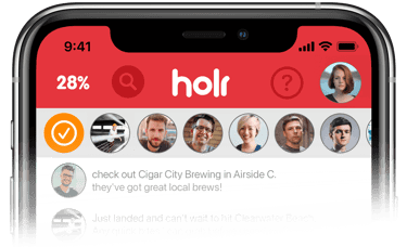 At a big game or a serene cafe? holr's check-in feature announces your presence, connecting you instantly with fellow Holr users nearby. Say hello to spontaneous meet-ups!